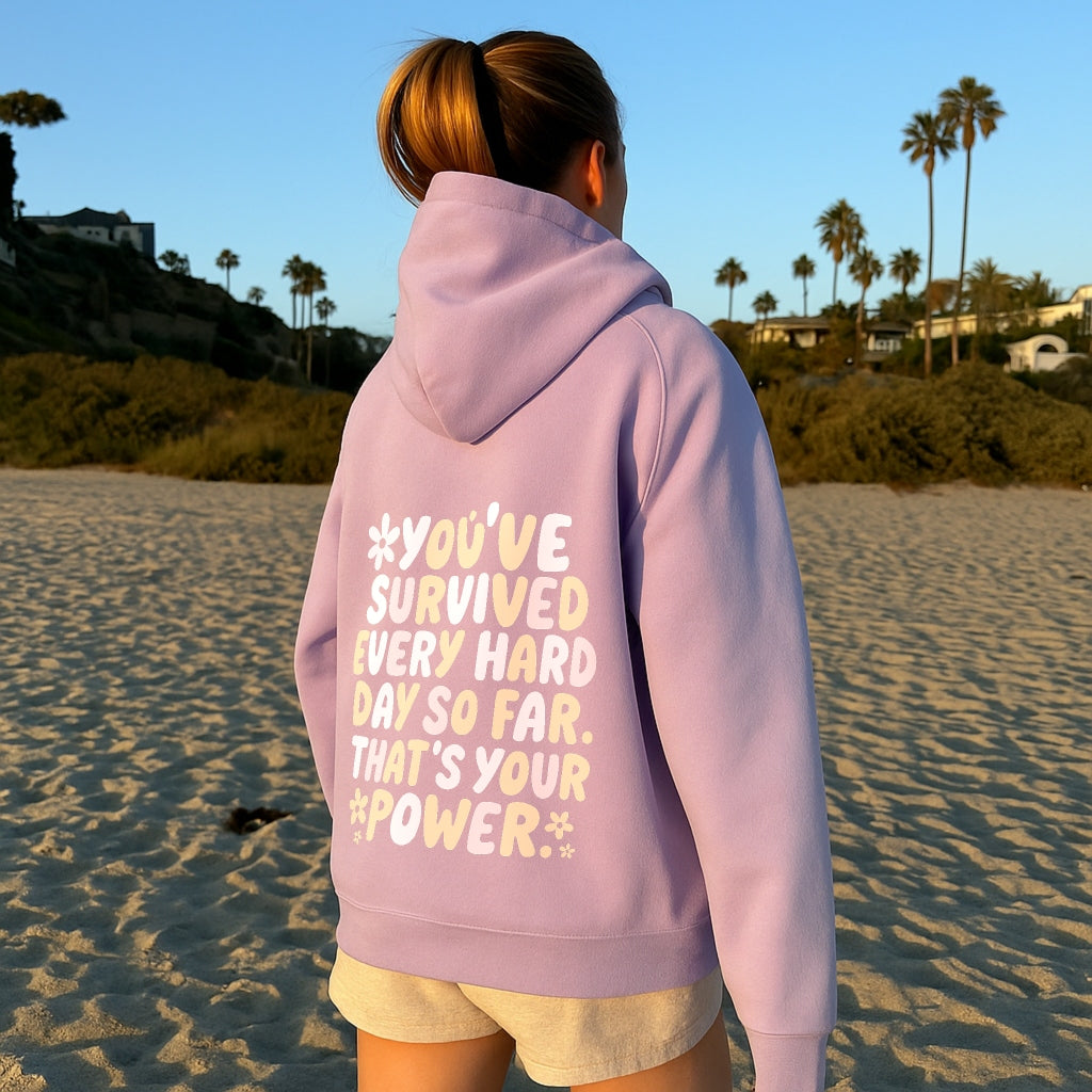 With “WARRIOR” on the chest and a powerful affirmation on the back, this hoodie is your wearable proof that resilience doesn’t have to be loud. Strength can look like softness. And surviving every hard day? That’s your superpower.